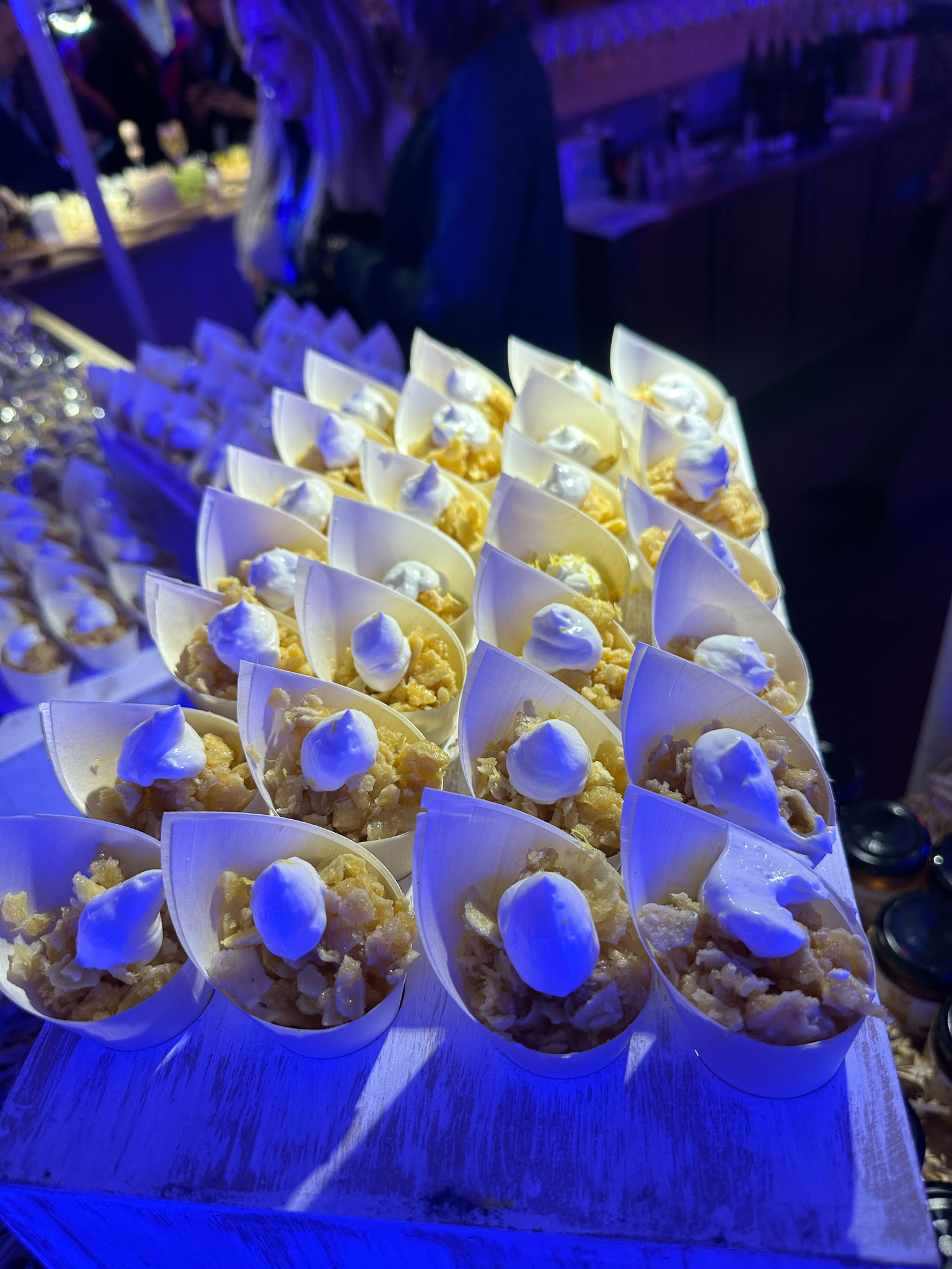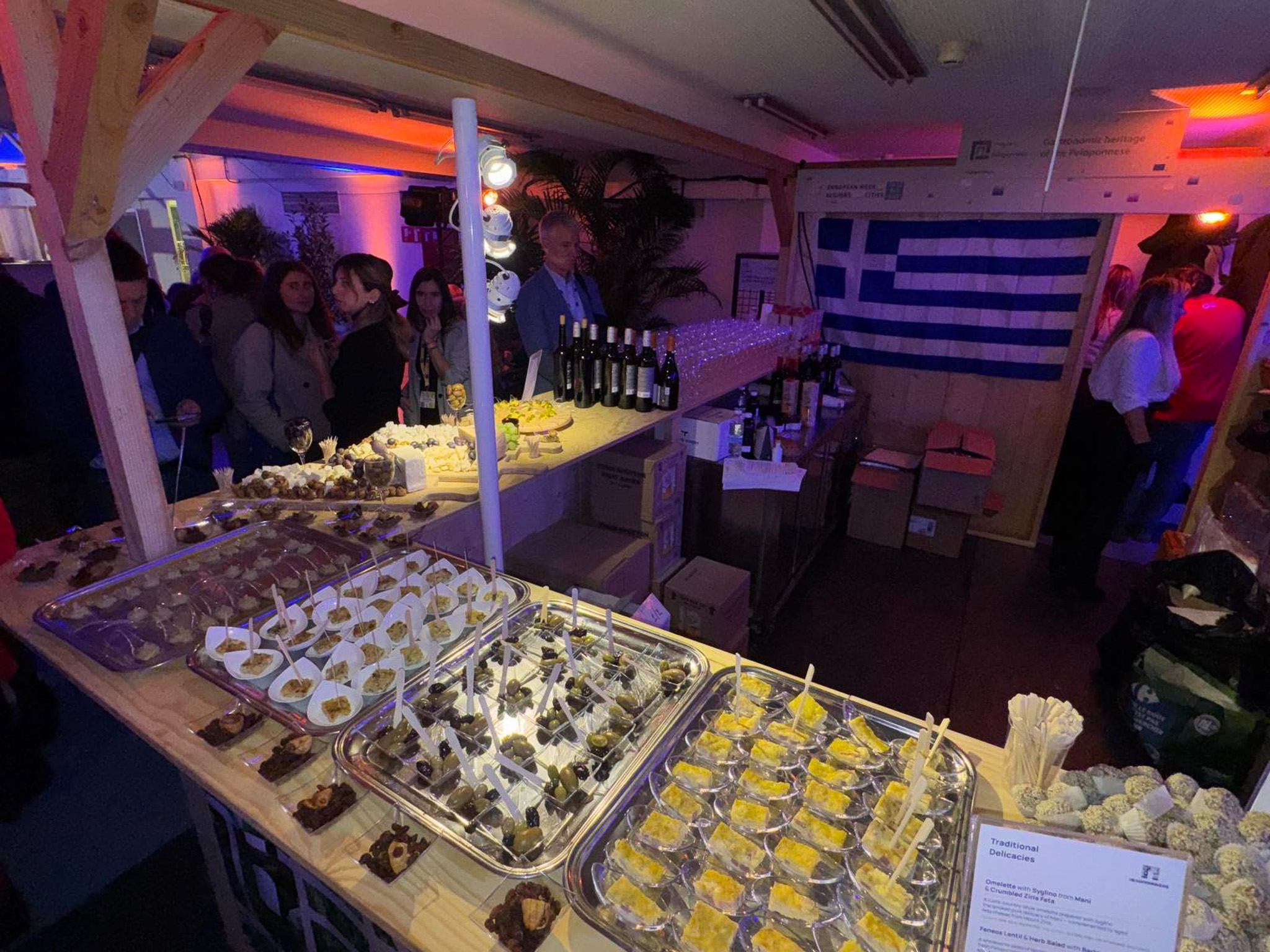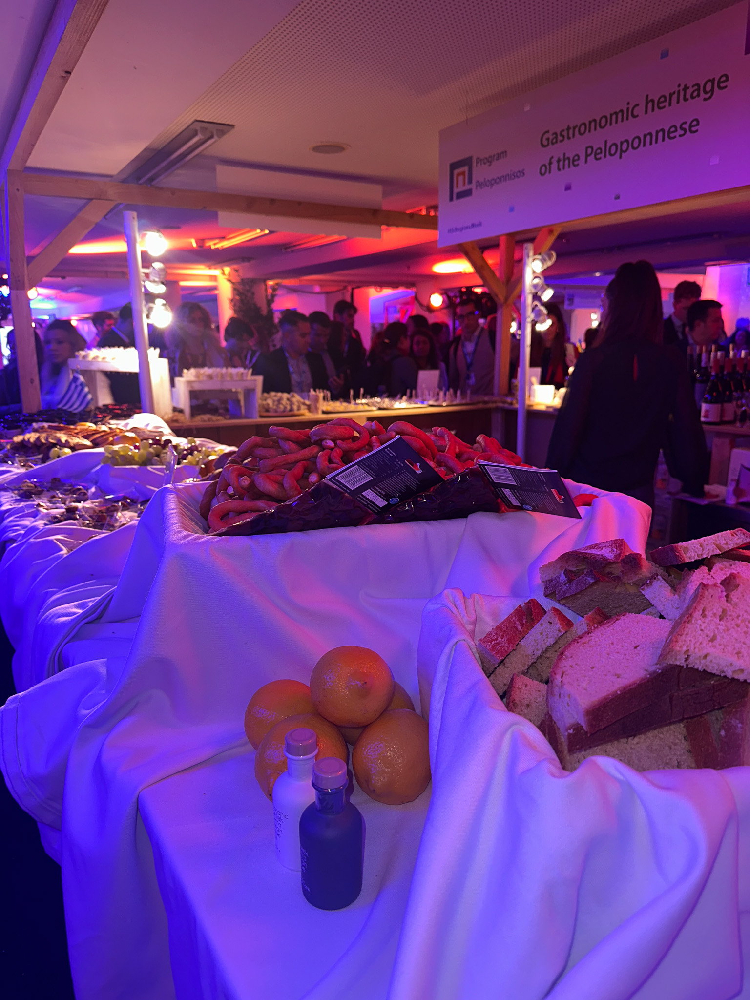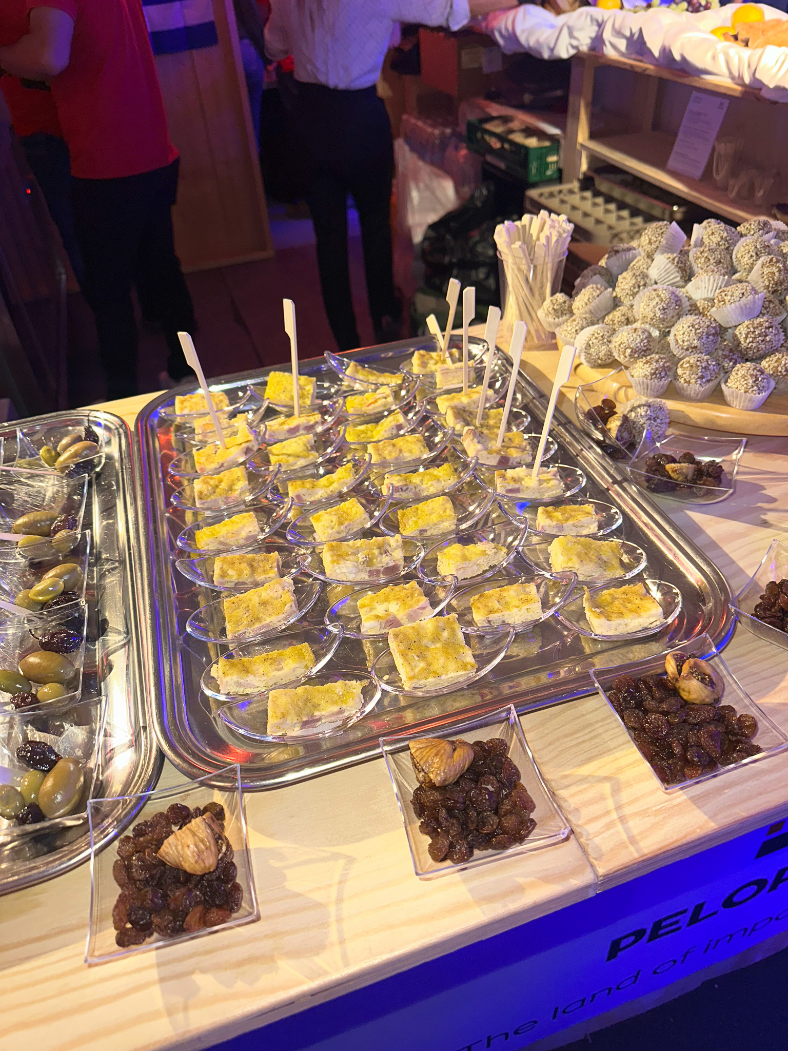Οι παρευρισκόμενοι στην εκδήλωση είχαν την ευκαιρία να απολαύσουν υψηλής ποιότητας πελοποννησιακά προϊόντα, μέσα από δημιουργίες της Korinthian Foods που συνδύασαν με δεξιοτεχνία την παράδοση με σύγχρονες γαστρονομικές τεχνικές.